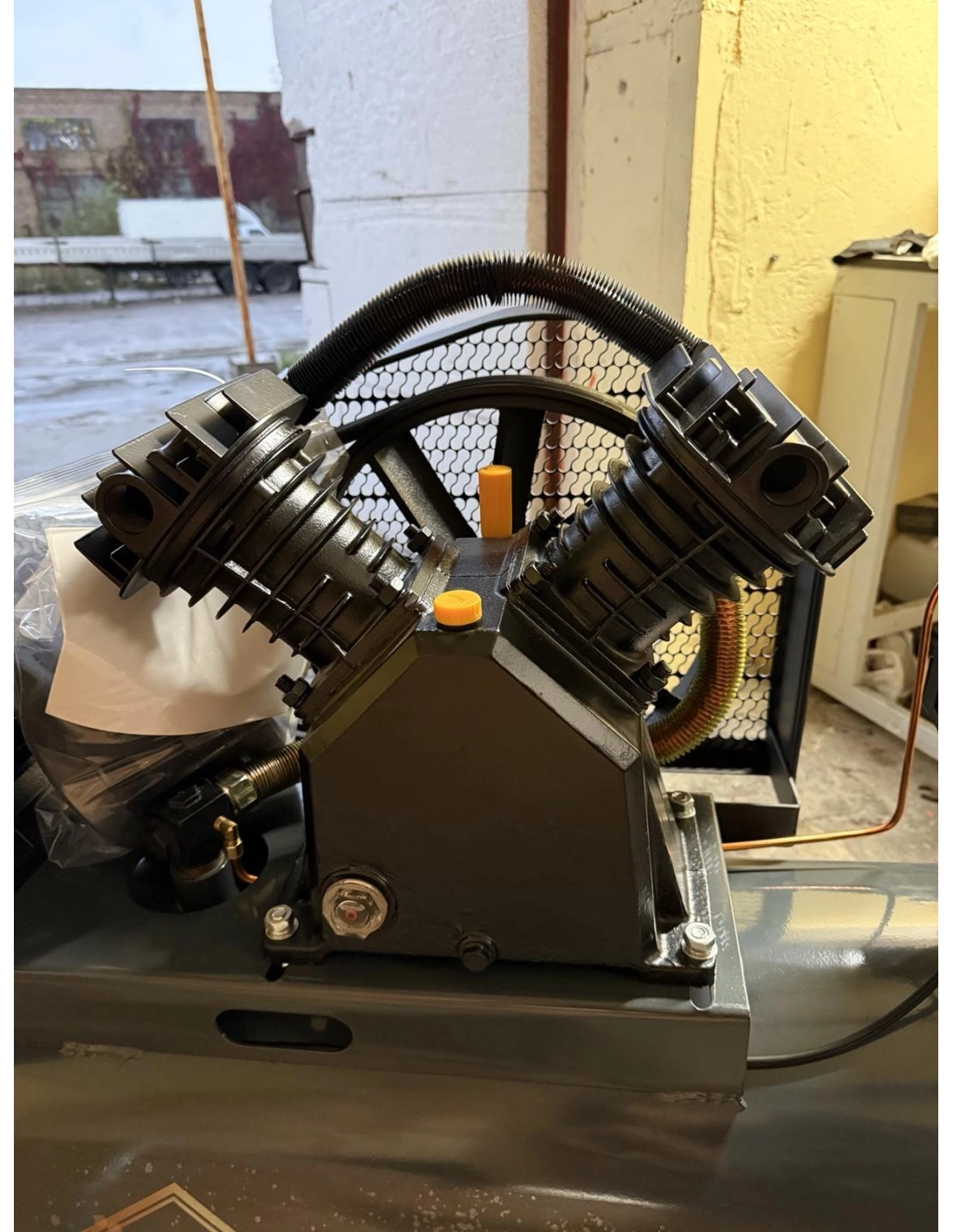 - компресорна головка з 2 циліндрами, встановлена на 150-л ресивері;